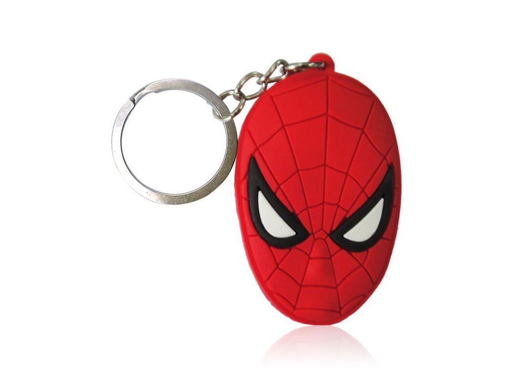 Gumová klíčenka s maskou Spider-Mana. Vyrobená z měkkého PVC materiálu s kovovým kroužkem pro snadné připevnění. Vhodná jako přívěsek na klíče, batoh nebo penál.